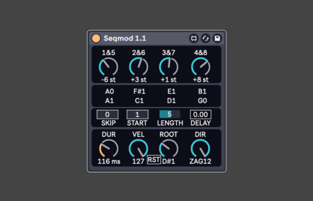 Seqmod circles through eight pitches set with 4 dials.
